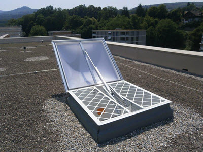 Mit Öffnungsvorrichtungen erweitern Sie den Funktionsumfang von Lichtkuppeln, so dass diese zum Lüften oder als Dachausstieg genutzt werden können. Weiter werden Lichtkuppeln mit RWA-Öffnungsvorrichtungen versehen, um im Brandfall Räume rauchfrei zu halten.
