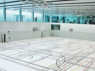 Grâce à sa surface PU souple de 3 mm, le CONIPUR HG forme – lorsqu’il est sollicité avec une charge ponctuelle – une petite déformation, qui est presque la taille de l’impact direct. Ces propriétés d’absorption et de protection peuvent être ajustées individuellement par l’épaisseur de la couche élastique. En outre, CONIPUR HG présente une faible hauteur d’installation.