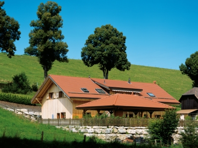 Der "RATIO" verleiht mit seiner ruhigen Textur Dachflächen in Bergregionen oder ländlichen Gegenden sowie den Dächern von Scheunen, Bauernhäusern, Chalets oder Ferienhäusern einen unverwechselbaren Charme. Dass er dabei äußerst wirtschaftlich zu verlegen ist, macht ihn umso