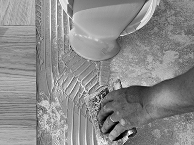 petit format et de parquet fini à 2 plis sur des supports absorbants et poreux, par. ex. sur des chapes en ciment et des panneaux